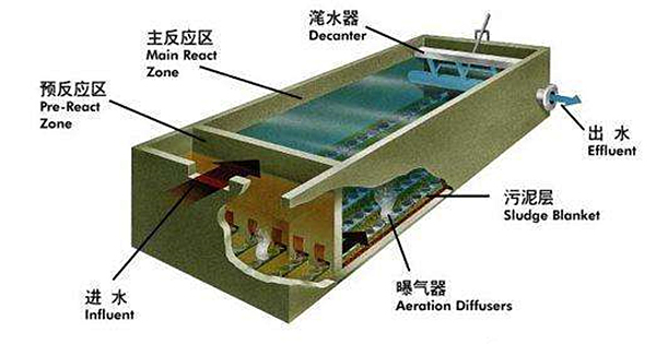SBR是序批式活性污泥法的简称,又称间歇式活性污泥法,是一种按间歇曝气方式来运行的活性污泥污水处理技术。SBR技术的核心是SBR反应池,该池集均化、初沉、生物降解、二沉等功能于一池,无污泥回流系统。一共有流入、反应、沉淀、排放和闲置五个工序,比较适用于间歇排放和流量变化较大的场合。