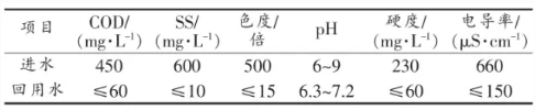 RO出水COD、色度和SS分别为15mg/L、3倍和1mg/L,系统去除率分别达96.7%、96.3%和99.8%。各指标都低于设计回用标准,回用率53%